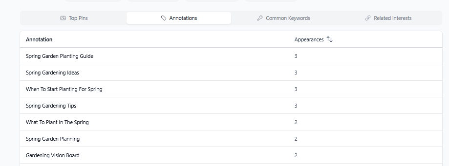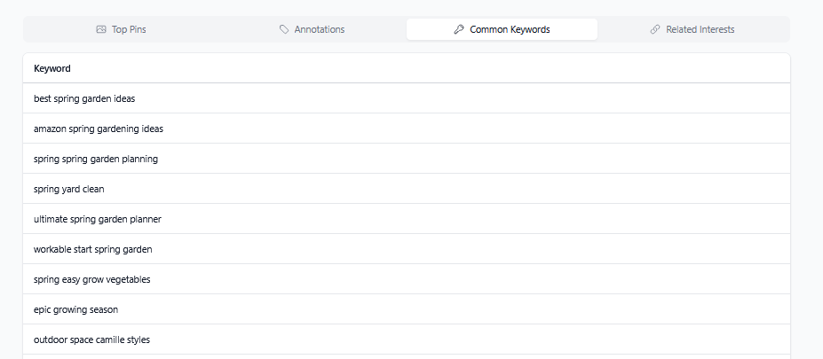 Reveal the “hidden keywords” Pinterest associates with top content — so your titles, descriptions, and boards match real intent.