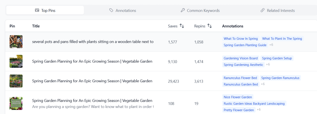 Start with one “core” topic → look at the top pins → pull the repeating patterns (annotations + keywords + interests) → turn those into your next pin titles, descriptions, and content angles.